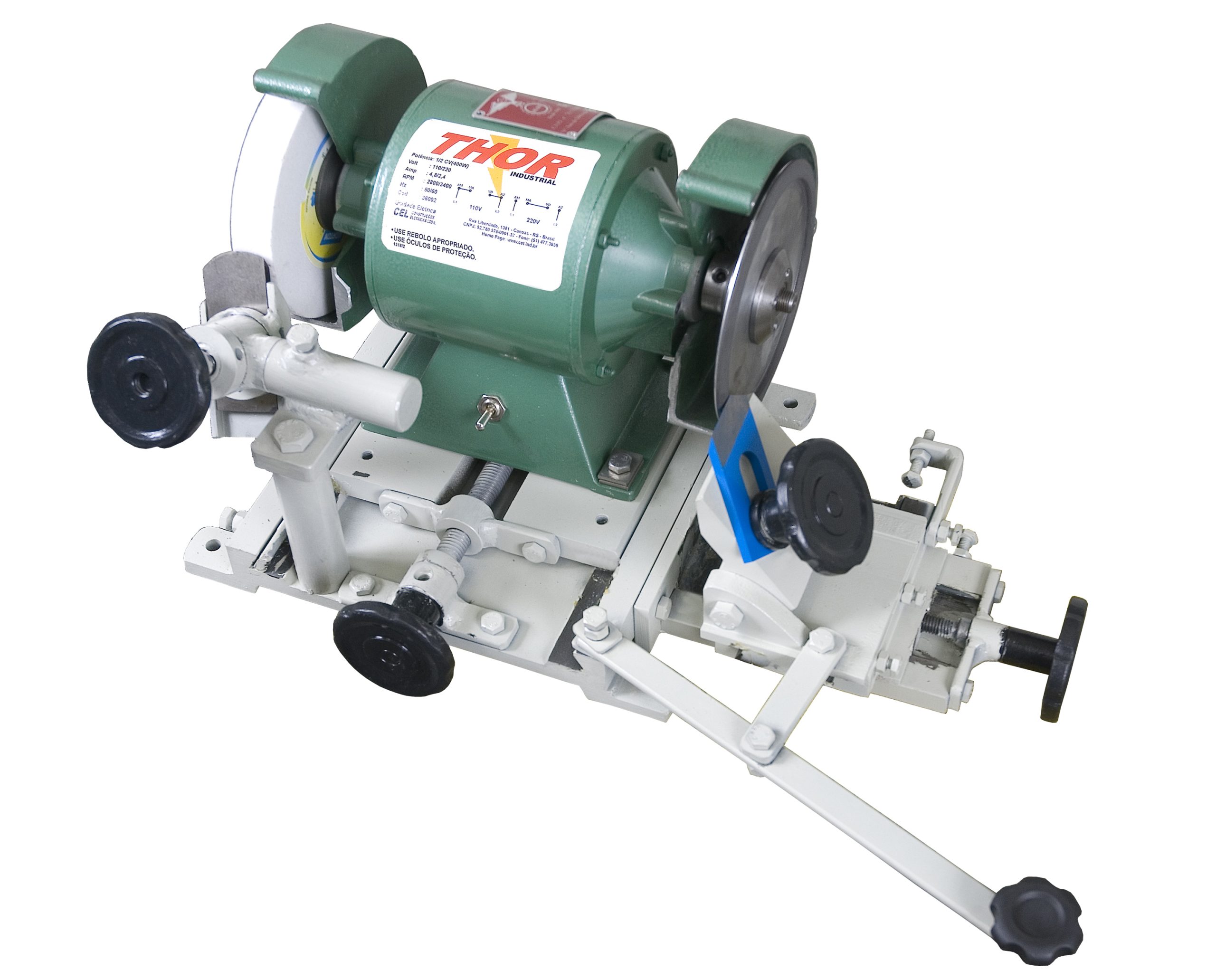 Afiadeira para facas de torno tubulares, podendo afiar tanto facas em “aço” como facas com ponta em “widea”